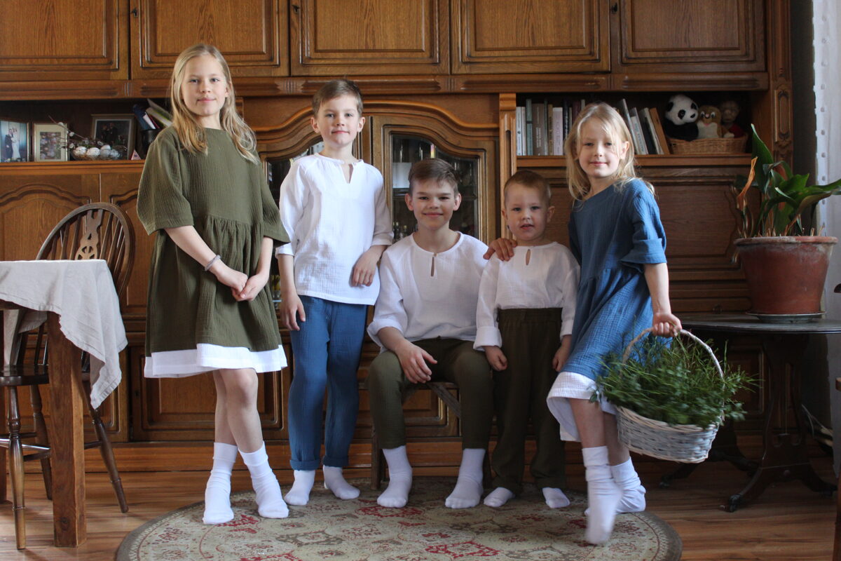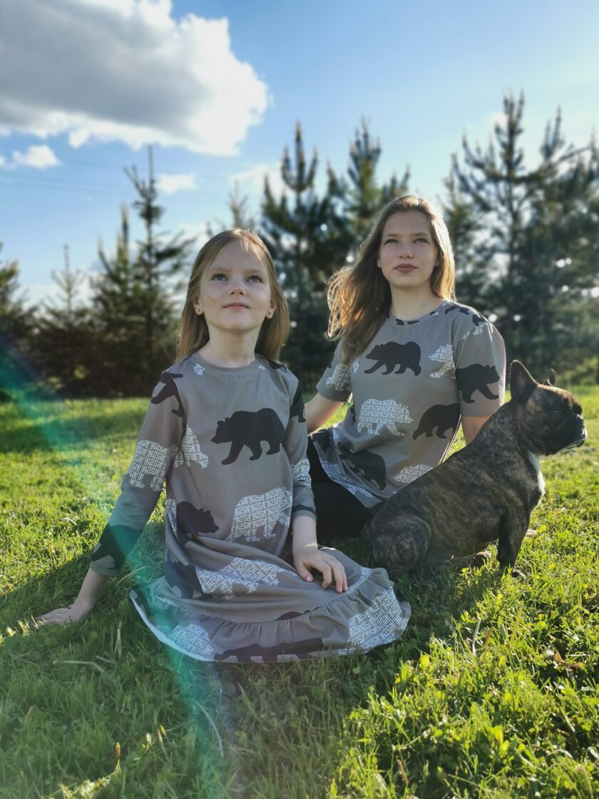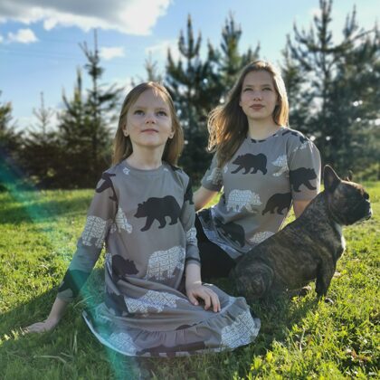 The fabrics in this collection are specially selected natural materials, dyed with natural, certified dyes, with an Oeko-Tex certificate, so that the garments are safe and sustainable. This time the collection includes dresses with long and short sleeves, T-shirts for both children and adults; leggings, hairbands, and other garments.