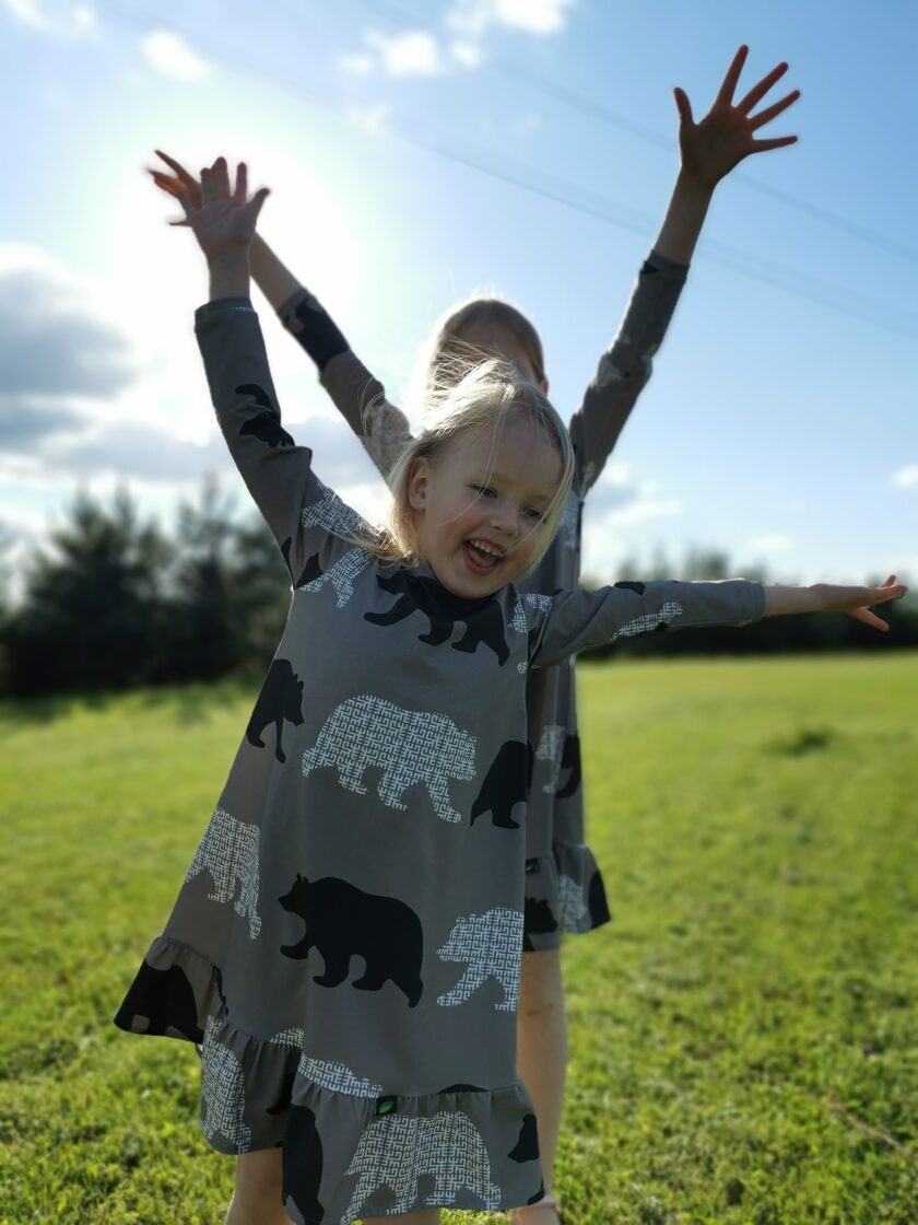 The collection incorporates the power of Latvian pattern signs - Laima’s rake, which has three, six, and nine branches - symbols of protection, health, and strength. The Laima sign was carved into a cradle, above doorposts, woven into blankets, and knitted into socks. In all times, it has been very important for parents to protect their children. While creating this collection, there arose a desire to transform the power of Latvian pattern signs and the bear’s protective strength into a protective force for children and their parents. May the clothing protect every day not only physically from the sun, wind, and rain, but also energetically, like the strong Bear and Laima.